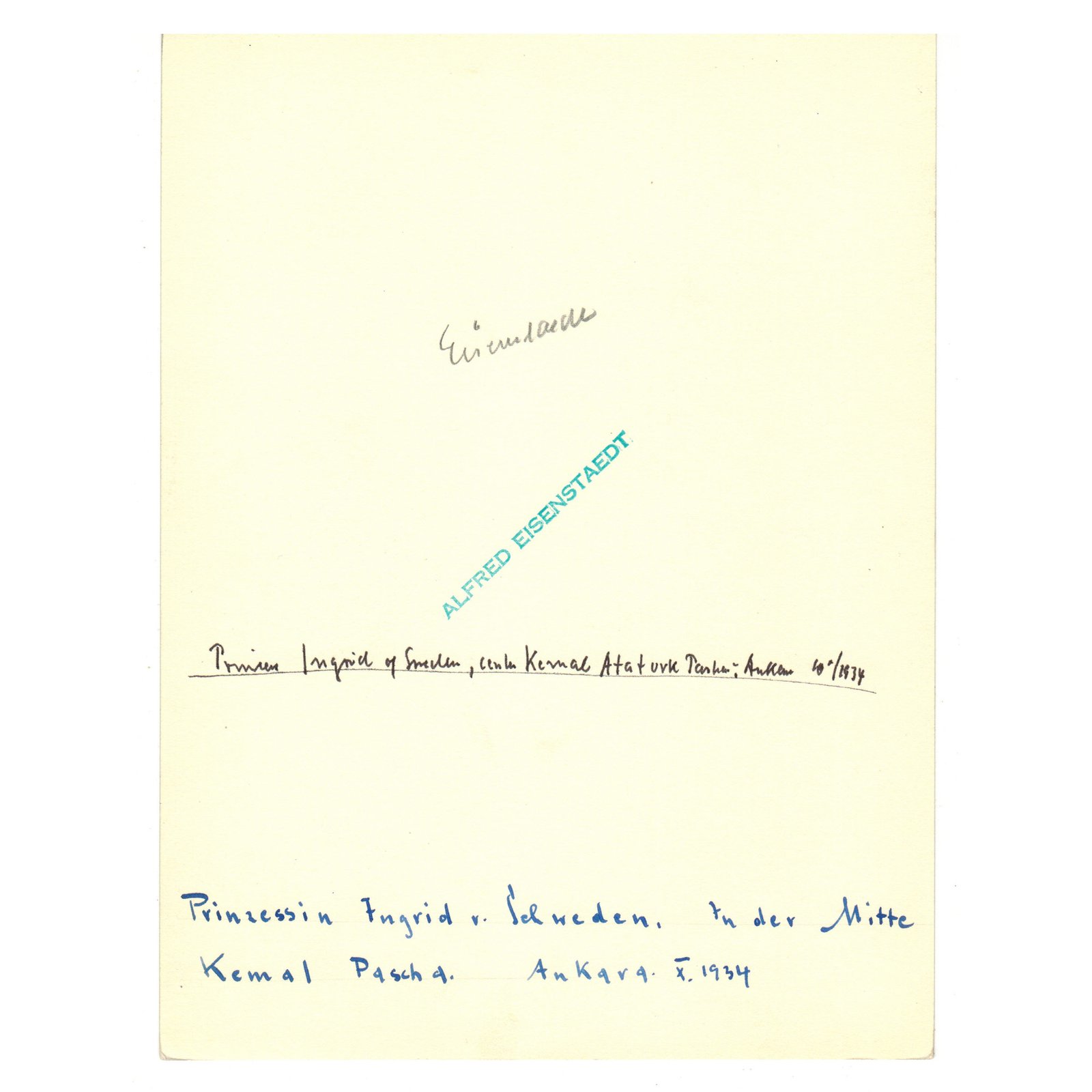 Atatürk, İsveç Prensesi Ingrid ve Kazım Fikri Özalp Fotoğrafı – Gümüş Baskı Orjinal Fotoğraf – Ekim/1934 Ankara – İmzalı ‘Alfred Eisenstaedt’ – 24 x 18 cm -2-